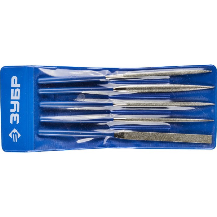 Набор надфилей алмазных 140?75 мм 5 предметов P 140 в пакете PVC ЗУБР 33386-140-H5