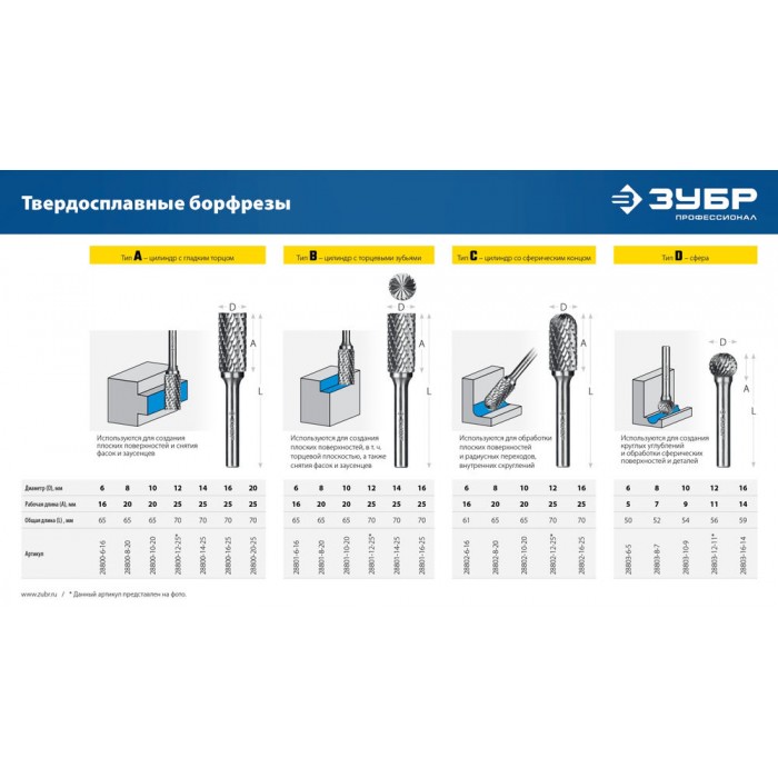 Твердосплавные борфрезы ЗУБР обеспечивают высокую производительность и могут использоваться для обработки различных материалов