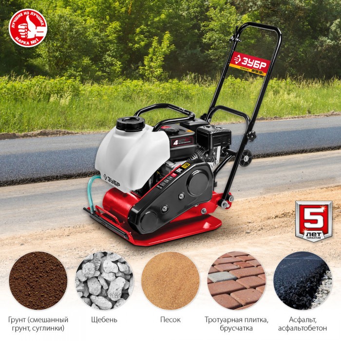 Виброплита предназначена для уплотнения бетонных, асфальтовых и сыпучих материалов, а также для формирования уплотненных поверхностей. Компактная конструкция позволяет осуществлять уплотнение смешанного грунта в самых узких местах, даже в очень узких траншеях. Направляющая рукоятка с виброзащитой позволяет увеличить количество часов непрерывной работы и снизить усталость для оператора. Четырехтактный двигатель ″ЗУБР″ обеспечит беспроблемную эксплуатацию при минимальном сервисном обслуживании на весь срок использования.