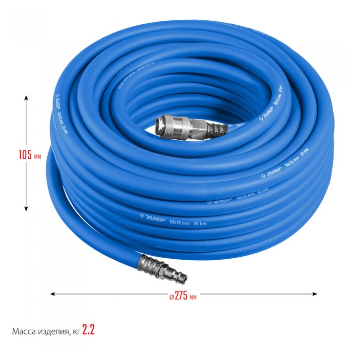 Шланг воздушный 15 м 10?15 мм 20 бар с фитингами рапид ЗУБР Профессионал 6481-15