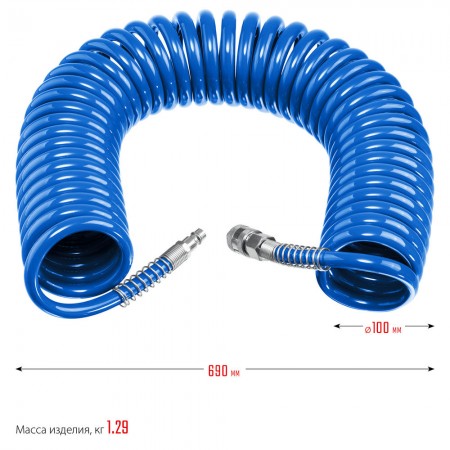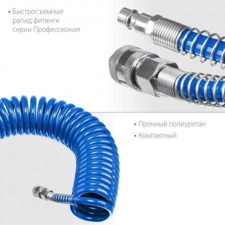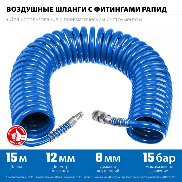 Шланг воздушный спиральный 15 м 8?12 мм 15 бар с фитингами рапид ЗУБР Профессионал 6472-15