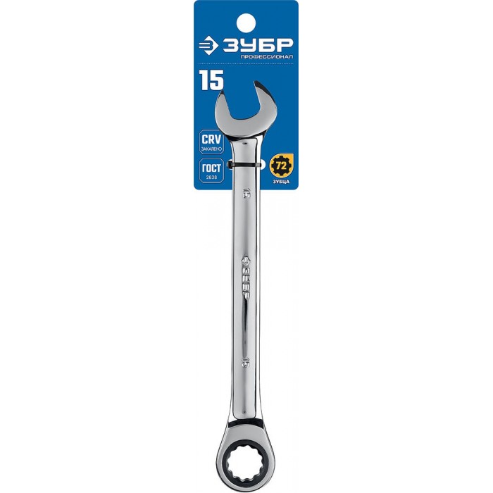 Ключ гаечный комбинированный трещоточный 15 мм Профессионал ЗУБР 27074-15