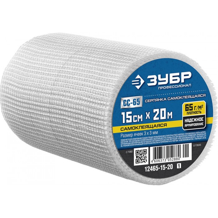 Сетка стеклотканевая самоклеящаяся 15 см?20 м 3?3 мм ЗУБР Профессионал 12465-15-20_z01