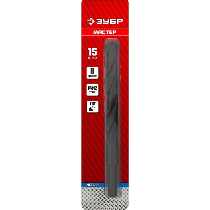 Сверло по металлу 15.0?169 мм сталь Р4М2 класс В проточенный хвостовик ЗУБР 29605-15