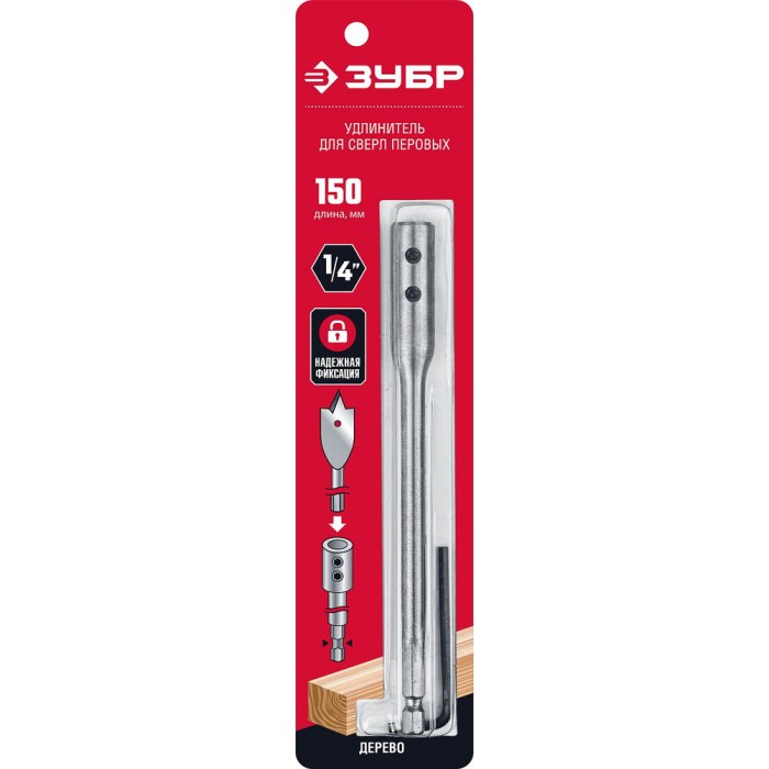 Удлинитель с имбусовым ключом для перовых сверл 150 мм, хвостовик HEX 1/4" ЗУБР 29507-150_z01