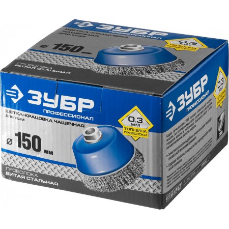 Щетка-крацовка чашечная для УШМ 150 мм, витая стальная проволока 0.3 мм ЗУБР Профессионал 35261-150_z02