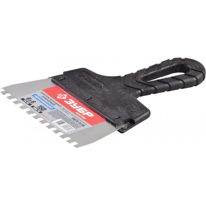 Шпатель фасадный нержавеющий 150 мм зуб 6?6 мм пластиковая ручка ЗУБР 10078-15-06
