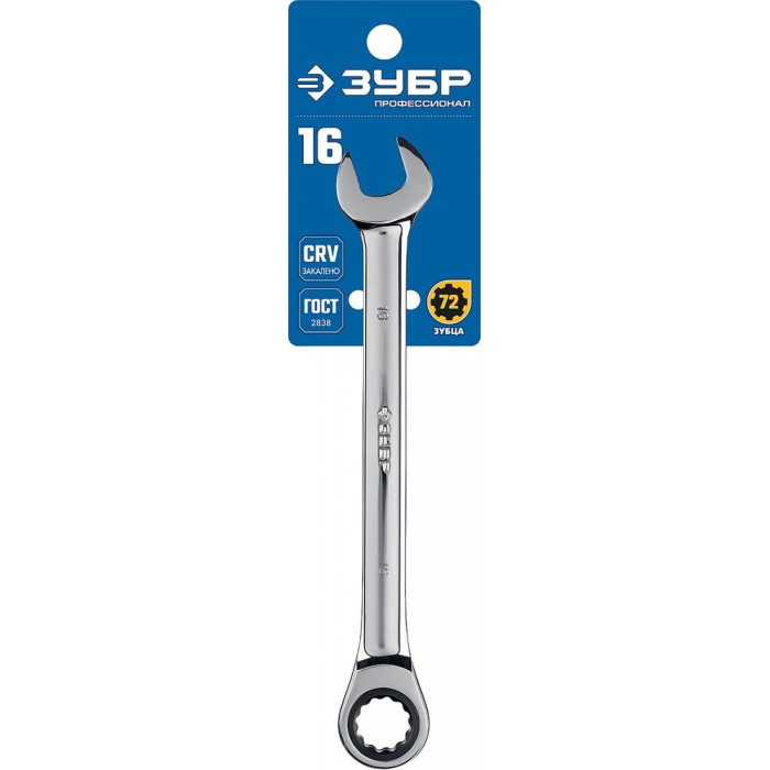 Ключ гаечный комбинированный трещоточный 16 мм Профессионал ЗУБР 27074-16
