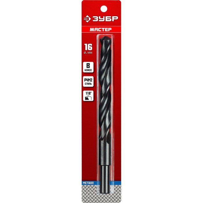 Сверло по металлу 16.0?178 мм сталь Р4М2 класс В проточенный хвостовик ЗУБР 29605-16