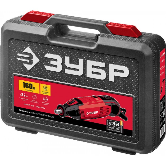 Гравер ЗУБР - универсальное устройство для широкого спектра работ (резка, сверление, полирование, гравирование, шлифование). Расширенная комплектация включает в себя базовый набор насадок для начала работы сразу после покупки. Мощный двигатель позволяет эффективно работать даже при большой нагрузке. ЗУБР - реализуя Ваши мечты
