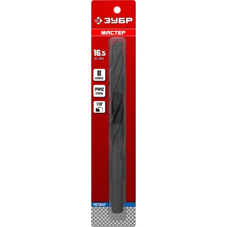 Сверло по металлу 16.5?184 мм сталь Р4М2 класс В проточенный хвостовик ЗУБР 29605-16.5