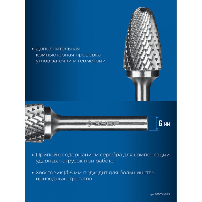 Твердосплавные борфрезы ЗУБР обеспечивают высокую производительность и могут использоваться для обработки различных материалов