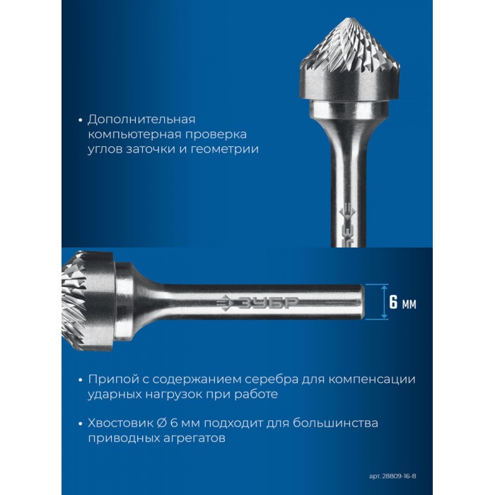 Твердосплавные борфрезы ЗУБР обеспечивают высокую производительность и могут использоваться для обработки различных материалов