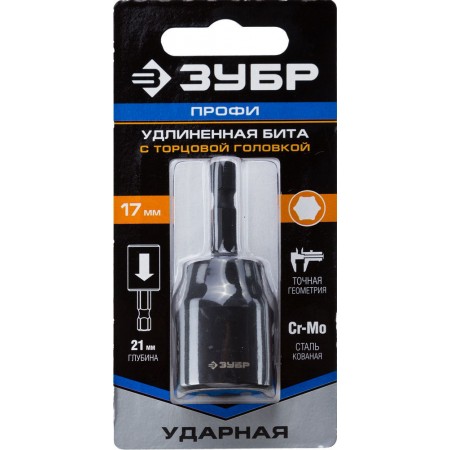 Бита ударная удлинённая с торцевой головкой 17 мм, 60 мм ЗУБР Профессионал 26377-17