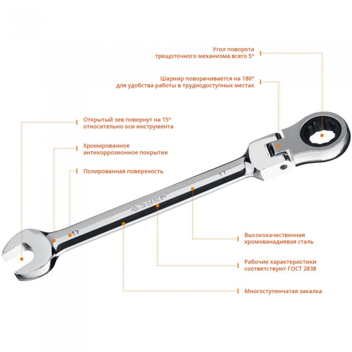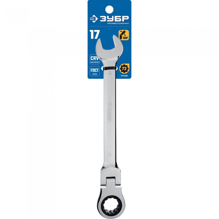 Ключ гаечный шарнирный трещоточный 17 мм Профессионал ЗУБР 27101-17