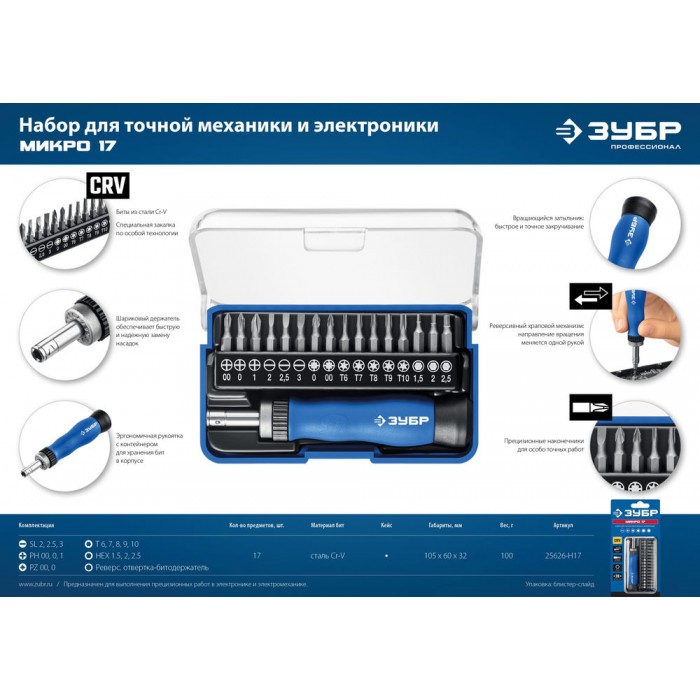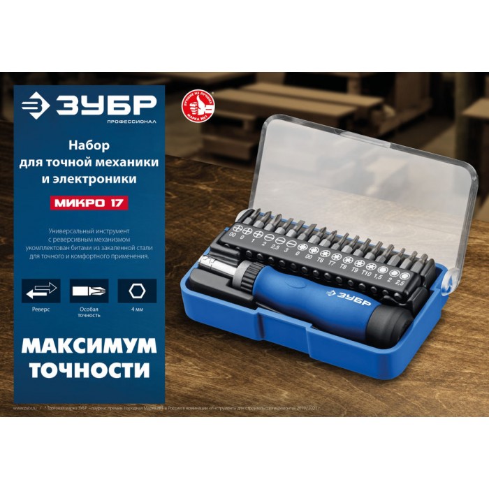 Отвертка реверсивная для точных работ 17 предм. ЗУБР Профессионал 25626-H17_z01