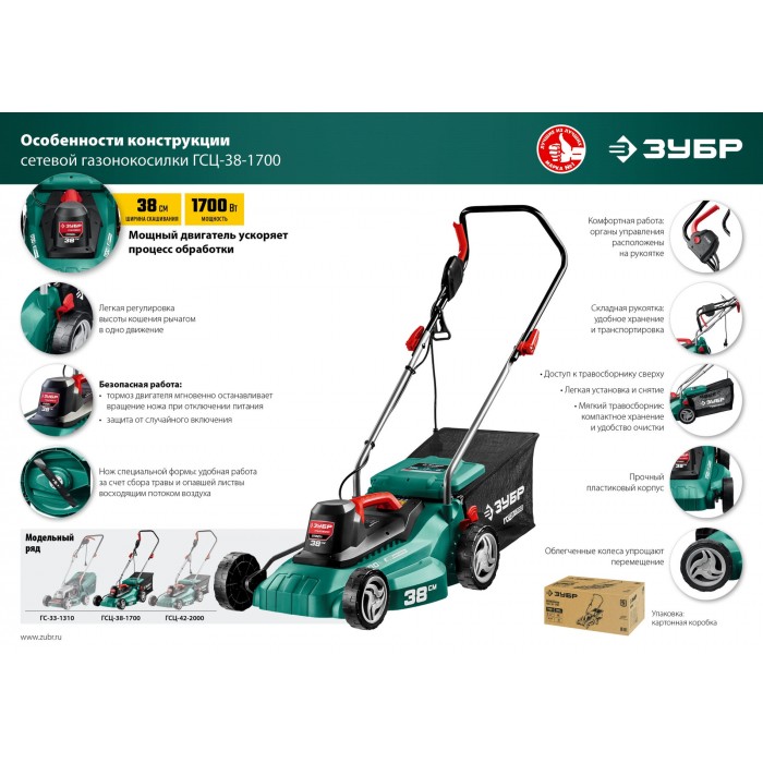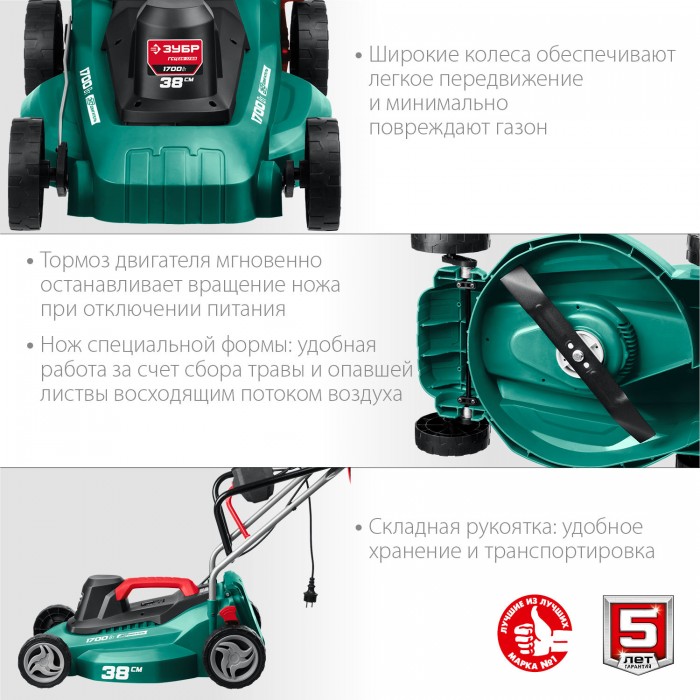 ЗУБР 1700 Вт, ш/с 38 см, сетевая газонокосилка (ГСЦ-38-1700)