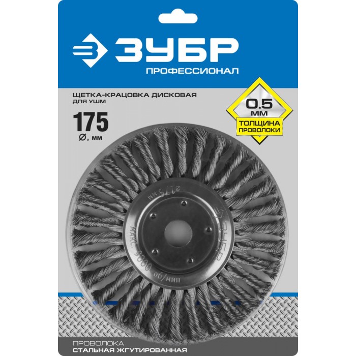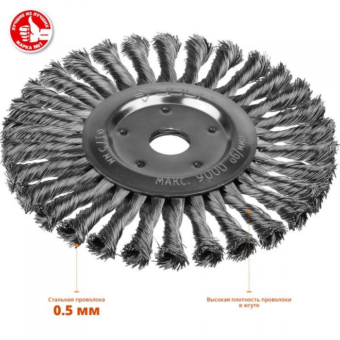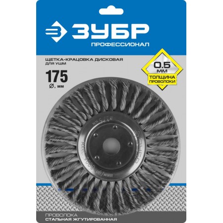 Щетка дисковая для УШМ 175?22 мм жгутированная стальная проволока 0.5 мм ЗУБР Профессионал 35190-175_z02