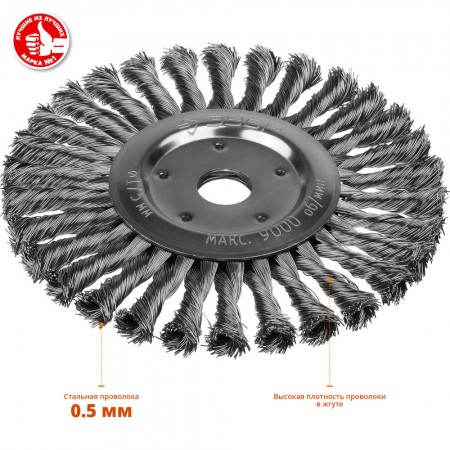 • Повышенный ресурс щетки благодаря еще более высокой жесткости сплетенного пучка и увеличенной толщине проволоки