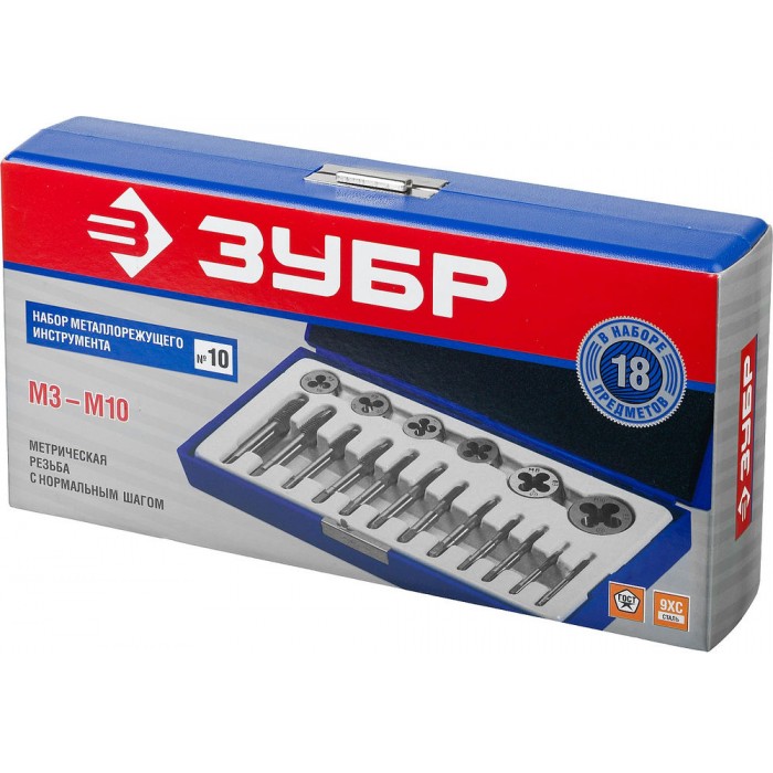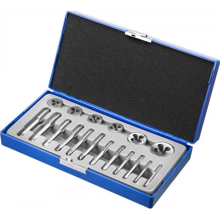 Набор предназначен для резьбонарезных работ в конструкциях и заготовках из сталей и цветных металлов. Метчики ручные однопроходные используются для нарезания внутренней метрической резьбы с нормальным шагом в глухих и сквозных отверстиях. Плашки предназначены для нарезания внешней метрической резьбы с нормальным шагом.