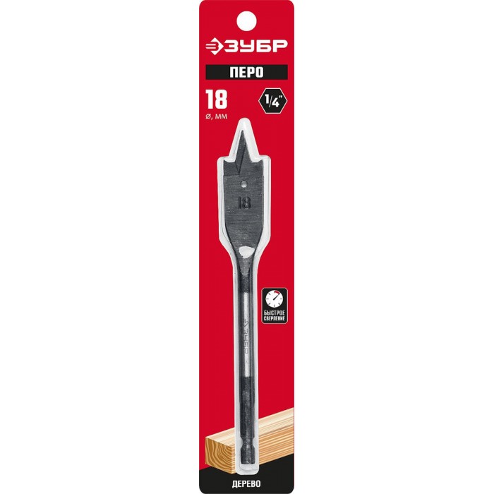 Сверло перовое по дереву 18?152 мм с боковыми подрезателями ЗУБР 29505-18