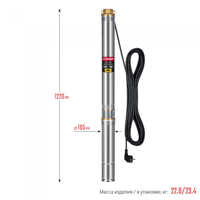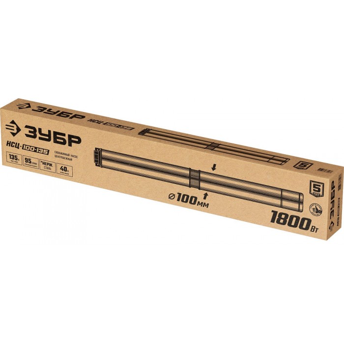 Насос скважинный центробежный 1800 Вт, 135 м напор, корпус из нержавеющей стали ЗУБР НСЦ-100-135