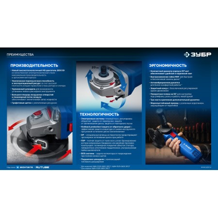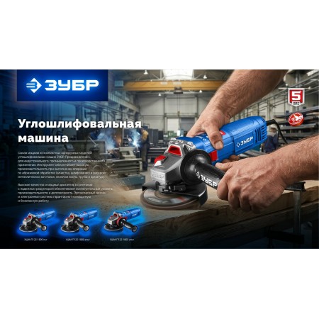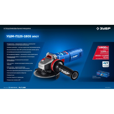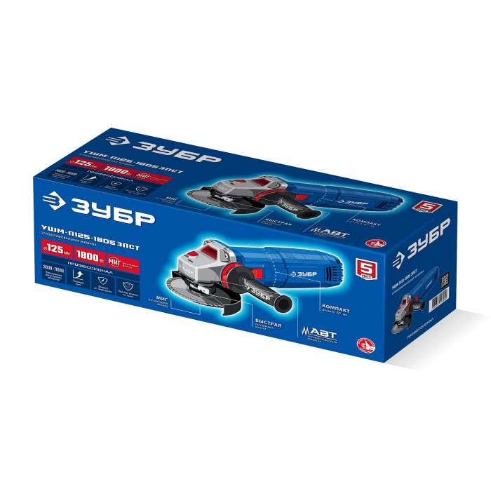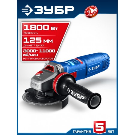 ЗУБР 1800 Вт, d125 мм, УШМ, регулировка оборотов, фланец ?МИГ?, Профессионал (УШМ-П125-1805 ЭПСТ)