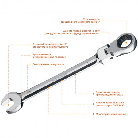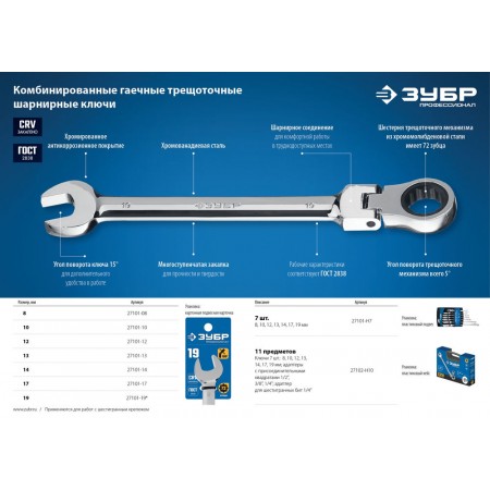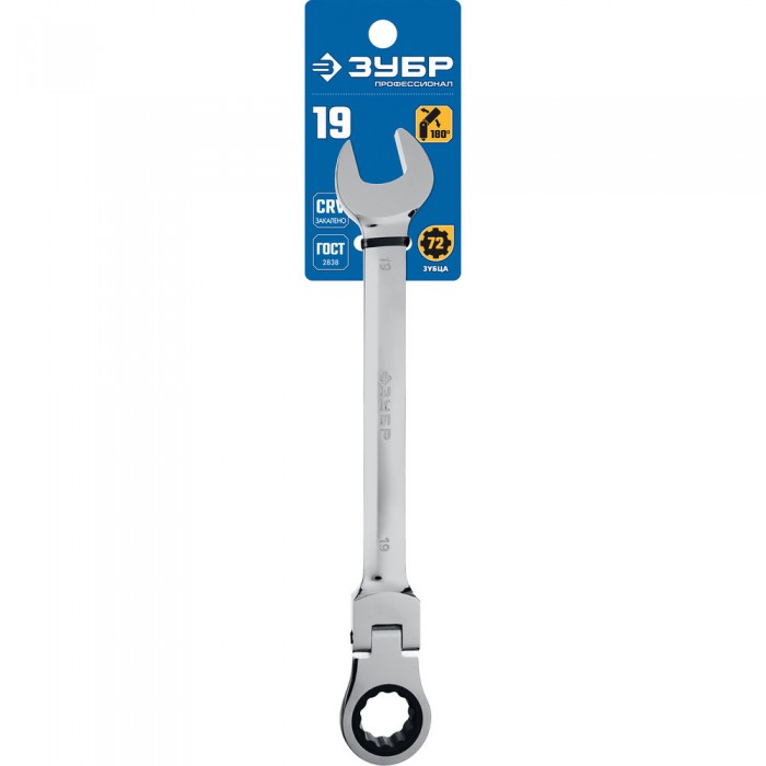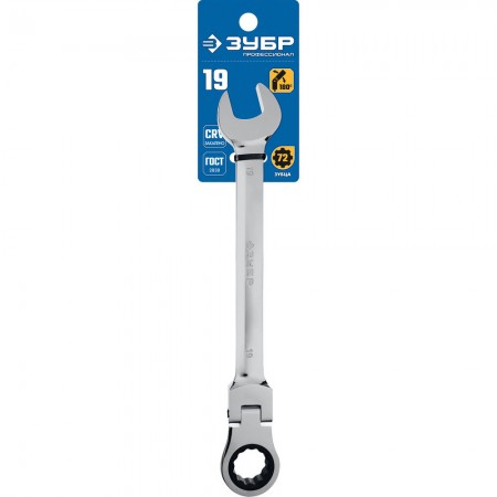 Ключ гаечный шарнирный трещоточный 19 мм Профессионал ЗУБР 27101-19
