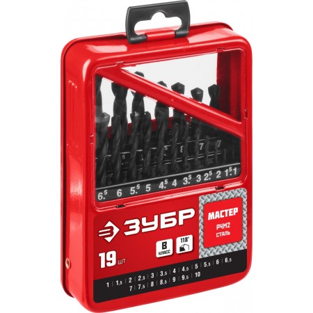 Набор сверл по металлу 19 шт, 1–10 мм, сталь Р4М2, класс В, металлический бокс ЗУБР 29605-H19