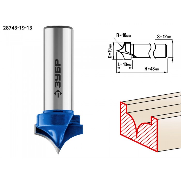 Фреза пазовая фасонная №4 19?13 мм радиус 10 мм ЗУБР Профессионал 28743-19-13