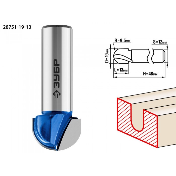 Фреза пазовая галтельная 19?13 мм радиус 9.5 мм ЗУБР Профессионал 28751-19-13