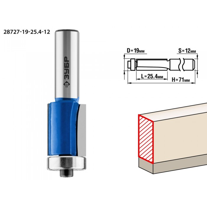 Фреза кромочная 19?25.4 мм с нижним подшипником хвостовик 12 мм ЗУБР Профессионал 28727-19-25.4-12