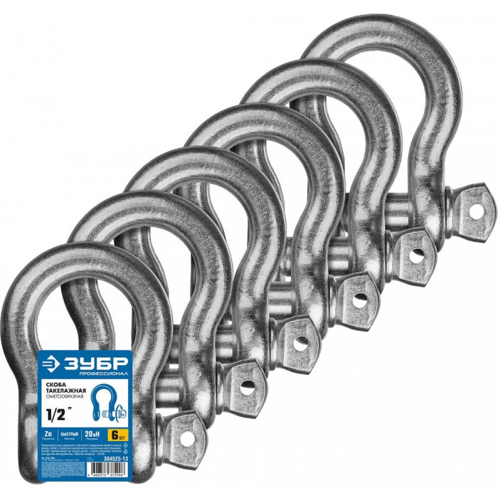 Скоба омегообразная 1/2" (12.7 мм), палец 16 мм, г/п 2 тн, цинк, 6 шт ЗУБР Профессионал 304525-13
