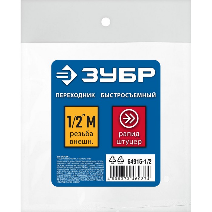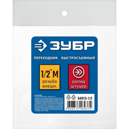 Переходник 1/2"M – рапид штуцер ЗУБР Профессионал 64915-1/2