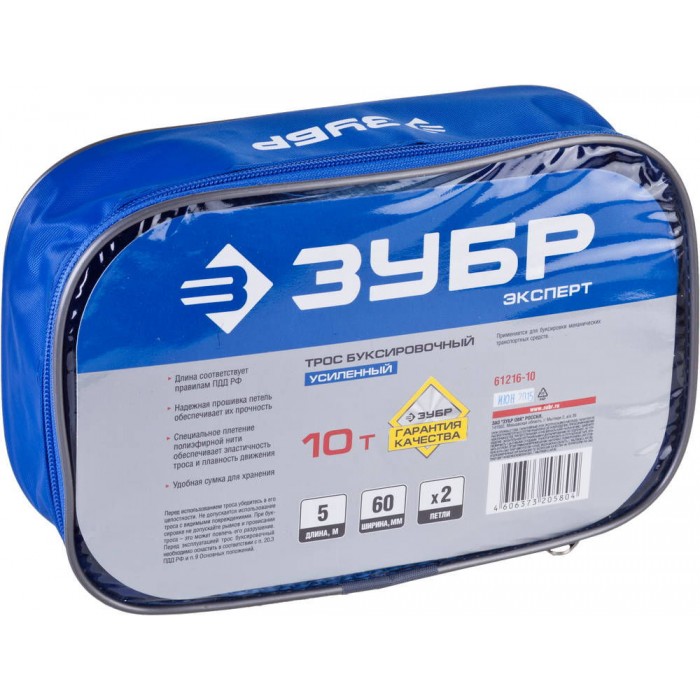 Трос буксировочный 2 петли, 10 т, ширина ленты 60 мм, длина 5 м ЗУБР 61216-10