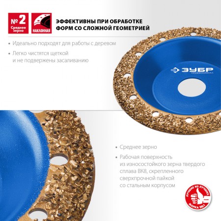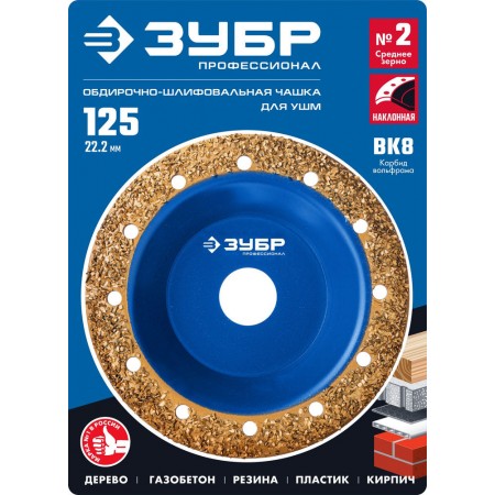 Обдирочно-шлифовальные чашки ЗУБР Профессионал изготовлены из износостойкого зерна твердосплава ВК8 скрепленного сверхпрочной пайкой с корпусом чашки благодаря чему обладают уникальным сверхвысоким ресурсом.