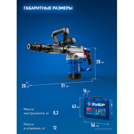 Отбойный молоток сочетает небольшой вес и габариты, но при этом отличную энергию удара 20 Дж и корпус из магниевого сплава, антивибрационную систему, провод длиной 6 метров, надёжный и самый распространённый патрон SDS-Max - всё это позволит Вам без труда справиться с выполнением нужных работ