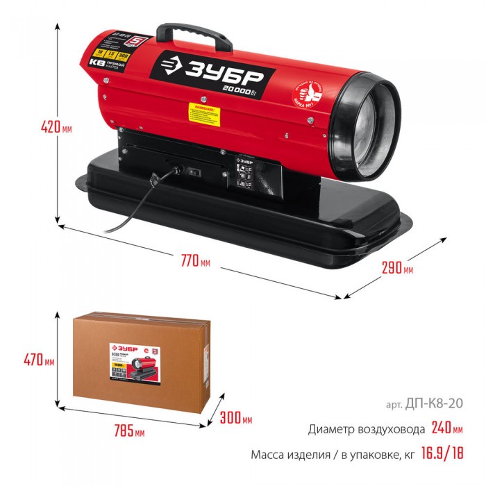 Высокоэффективный дизельный теплогенератор прямого нагрева работающий на дизельном топливе для всех климатических условий. Оптимально подходит для сушки и прогрева на строительных площадках складских комплексов и проветриваемых помещений. Надежный поджиг и эффективное горение гарантируют безотказную подачу тепла в любых условиях эксплуатации. Сделано в России