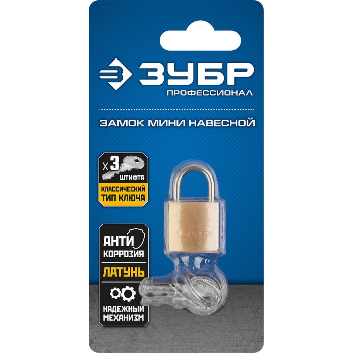 Замок навесной мини 20 мм, латунный корпус ЗУБР Профессионал 37130-20_z01