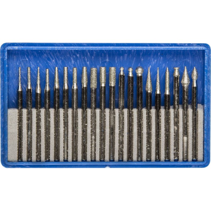 Набор алмазных мини-насадок для гравера 20 шт, хвостовик d 3 мм, Р 150–180 ЗУБР Профессионал 33383-H20