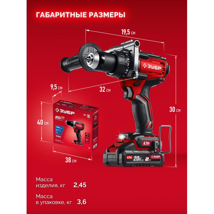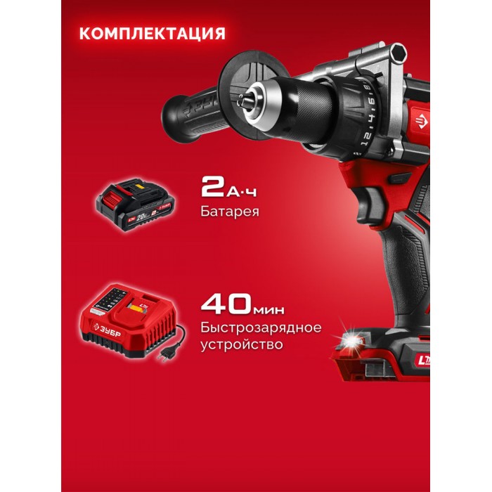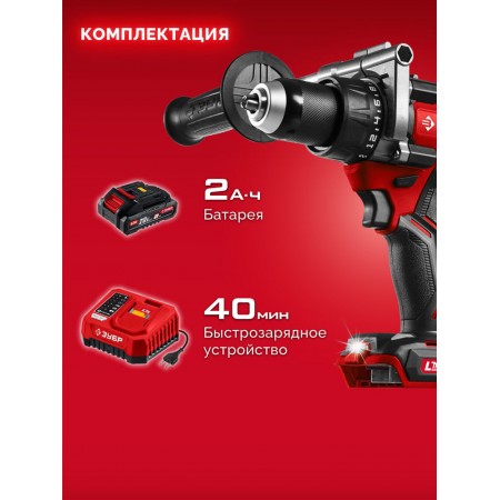 Бесщеточная дрель-шуруповерт ЗУБР системы LMS с максимальным крутящим моментом 165 Нм предназначена для работы с самым крупным крепежом (саморезы до 12 мм диаметром) и сверления отверстий до 40 мм в дереве. Встроенная защита от обратного удара предотвращает повреждение кисти при резкой блокировке вала. Комплектация с аккумулятором позволяет начать работу сразу после покупки