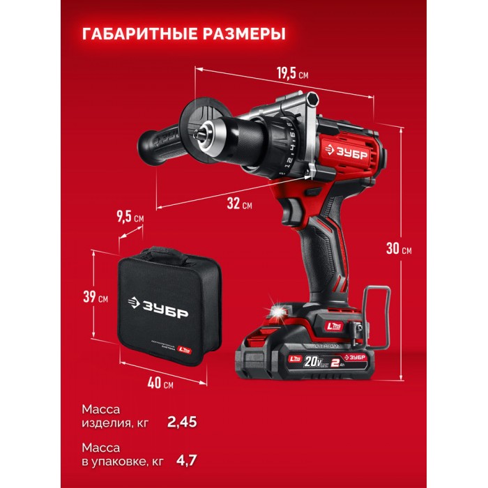 Бесщеточная дрель-шуруповерт ЗУБР системы LMS с максимальным крутящим моментом 165 Нм предназначена для работы с самым крупным крепежом (саморезы до 12 мм диаметром) и сверления отверстий до 40 мм в дереве. Встроенная защита от обратного удара предотвращает повреждение кисти при резкой блокировке вала. Комплектация с двумя аккумуляторами позволяет работать практически без остановки