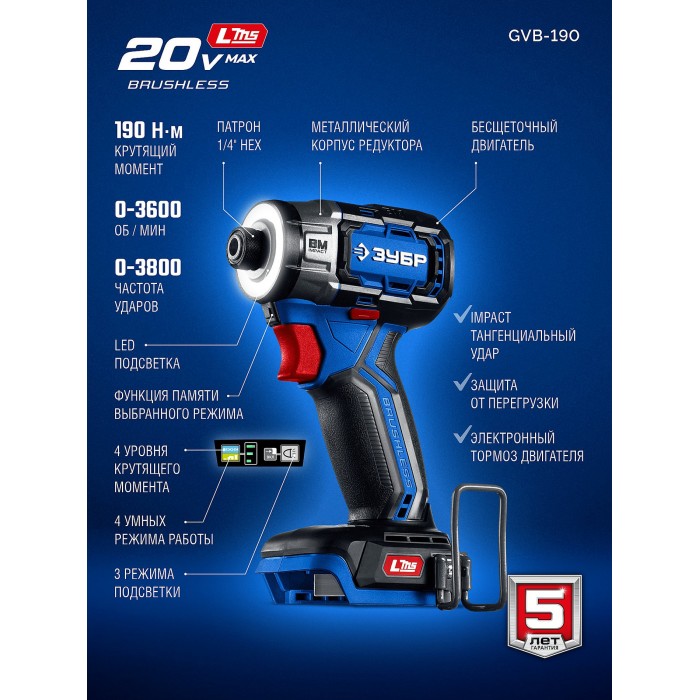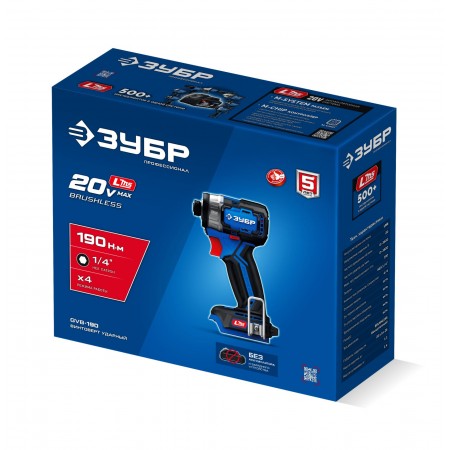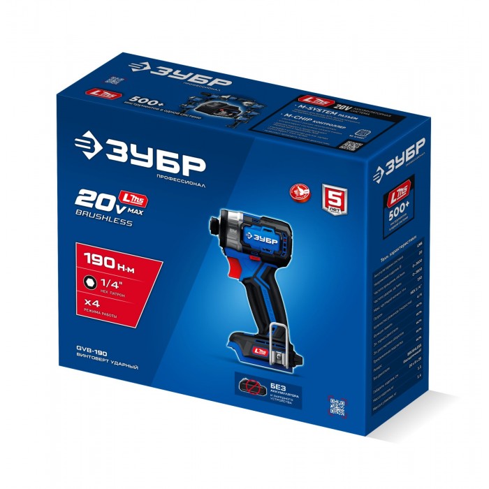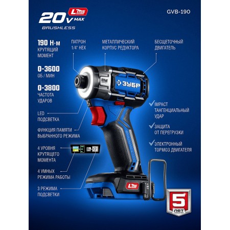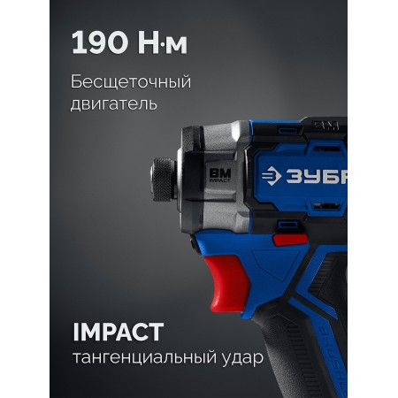 ЗУБР 20 В, 190 Н·м, без АКБ (LMS), бесщеточный ударный винтоверт, ПРОФЕССИОНАЛ (GVB-190)
