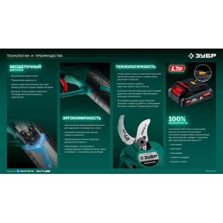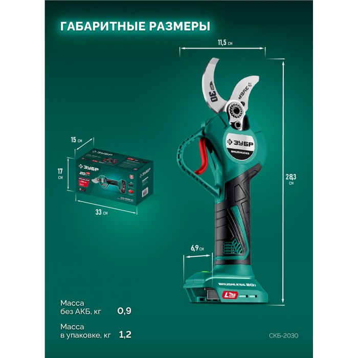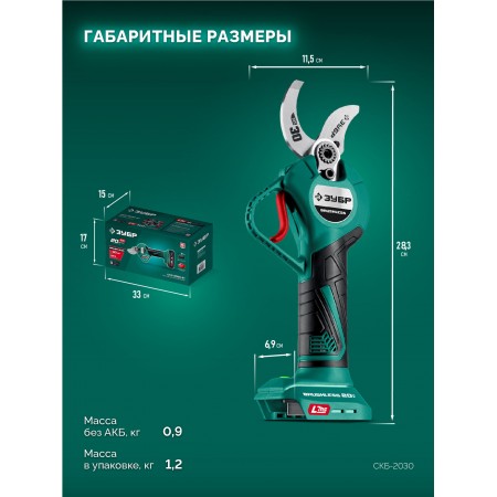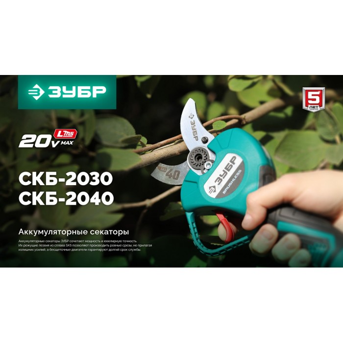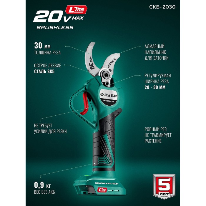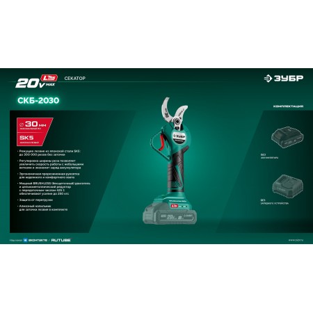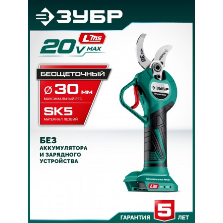 ЗУБР 20 В, 30 мм макс. рез, без АКБ (LMS), секатор аккумуляторный (СКБ-2030)