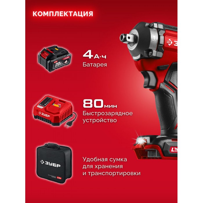 Бесщеточный ударный гайковерт ЗУБР системы LMS с максимальным крутящим моментом 350 Нм предназначен для фиксации резьбовых соединений размером до М18. Ударная функция с тангенциальным направлением удара обеспечивает эффективное заворачивание без реактивного момента на кисть оператора. Комплектация с аккумулятором большой емкости позволяет работать дольше на одном заряде