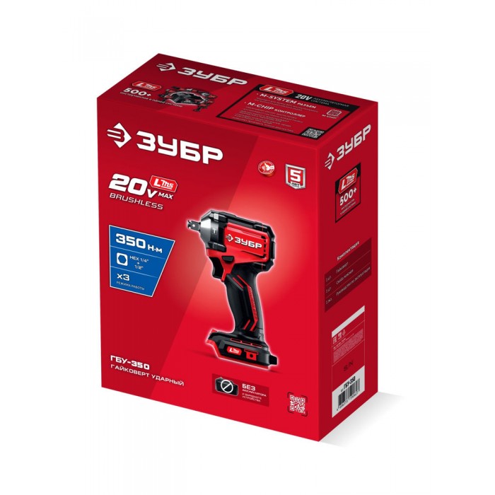 Бесщеточный ударный гайковерт ЗУБР системы LMS с максимальным крутящим моментом 350 Нм предназначен для фиксации резьбовых соединений размером до М18. Ударная функция с тангенциальным направлением удара обеспечивает эффективное заворачивание без реактивного момента на кисть оператора