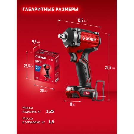 Бесщеточный ударный гайковерт ЗУБР системы LMS с максимальным крутящим моментом 500 Нм предназначен для фиксации резьбовых соединений размером до М22. Ударная функция с тангенциальным направлением удара обеспечивает эффективное заворачивание без реактивного момента на кисть оператора