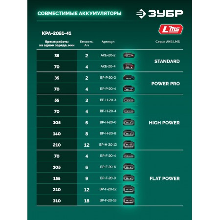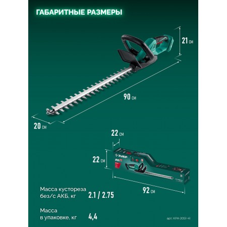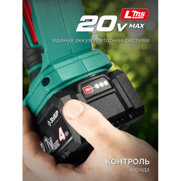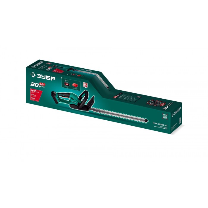 ЗУБР 20 В, 510 мм, 1 АКБ LMS (4 Ач), кусторез аккумуляторный (КРА-2051-41)