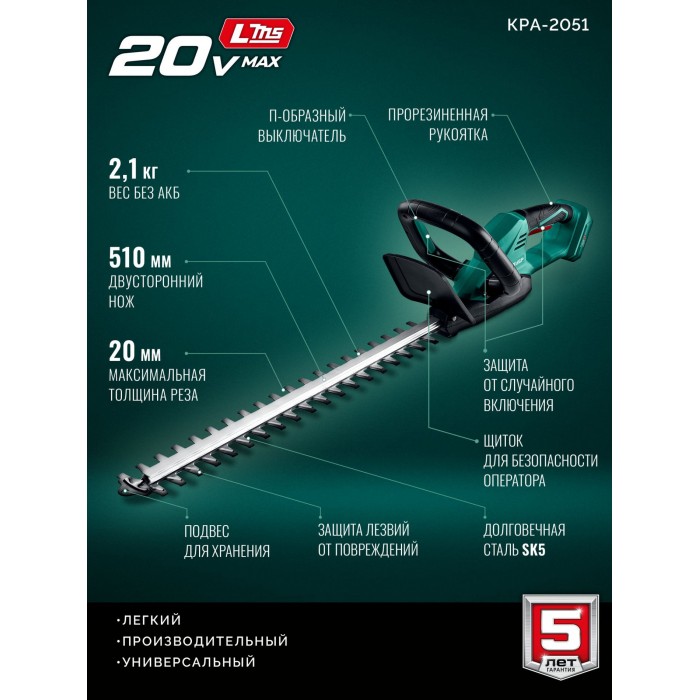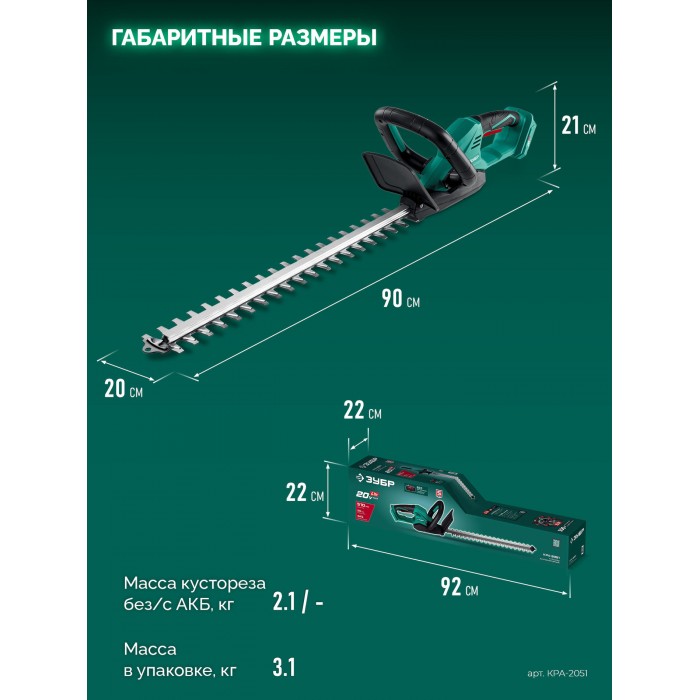 ЗУБР 20 В, 510 мм, без АКБ (LMS), кусторез аккумуляторный (КРА-2051)