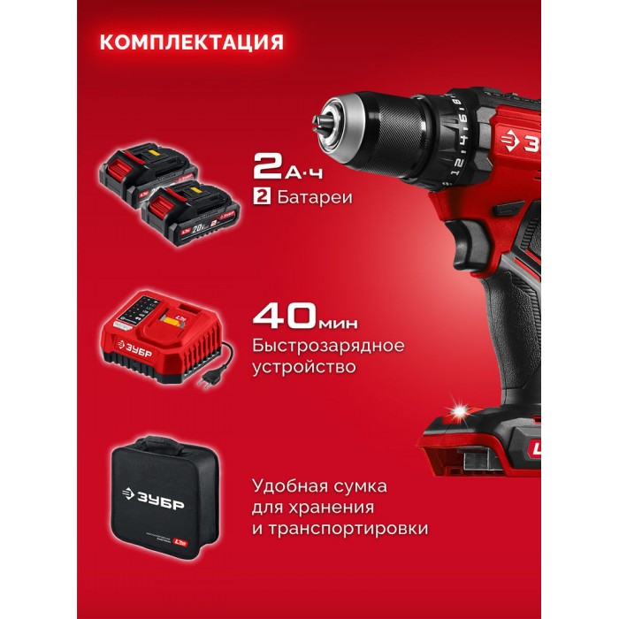 Бесщеточная дрель-шуруповерт ЗУБР системы LMS с увеличенным крутящим моментом предназначена для быстрого заворачивания саморезов до 8 мм диаметром и сверления отверстий до 30 мм в дереве. Длительная работа от одного заряда обеспечивается эффективным двигателем BRUSHLESS. Комплектация с двумя аккумуляторами позволяет работать практически без остановки